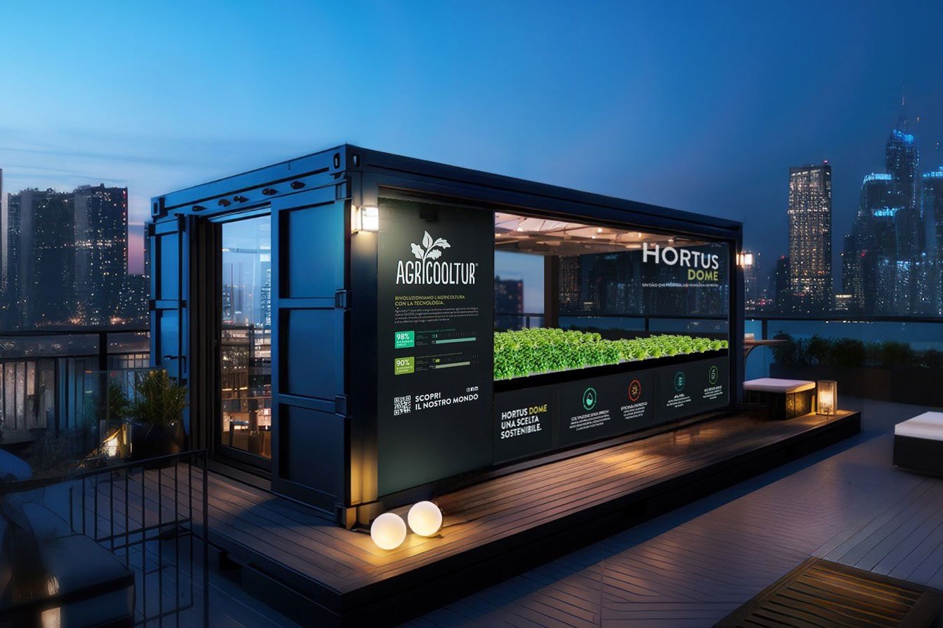 Le soluzioni Agricooltur® per il Real Estate integrano sistemi di coltivazione aeroponica e infrastrutture verdi all’interno di edifici e spazi urbani, contribuendo alla riqualificazione degli immobili, alla creazione di ambienti di qualità e al miglioramento delle performance ESG. Un approccio che unisce tecnologia, design e natura per ripensare il modo di vivere e valorizzare gli spazi costruiti.